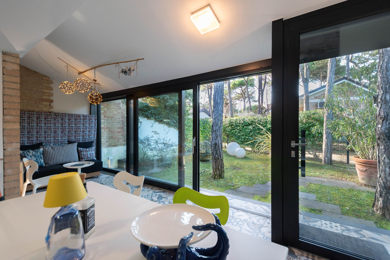 In una delle aree più riservate e verdi di Lignano Pineta, questa porzione di bifamiliare completamente rinnovata offre ambienti ben distribuiti, dotazioni moderne e spazi esterni pensati per essere vissuti in totale privacy.