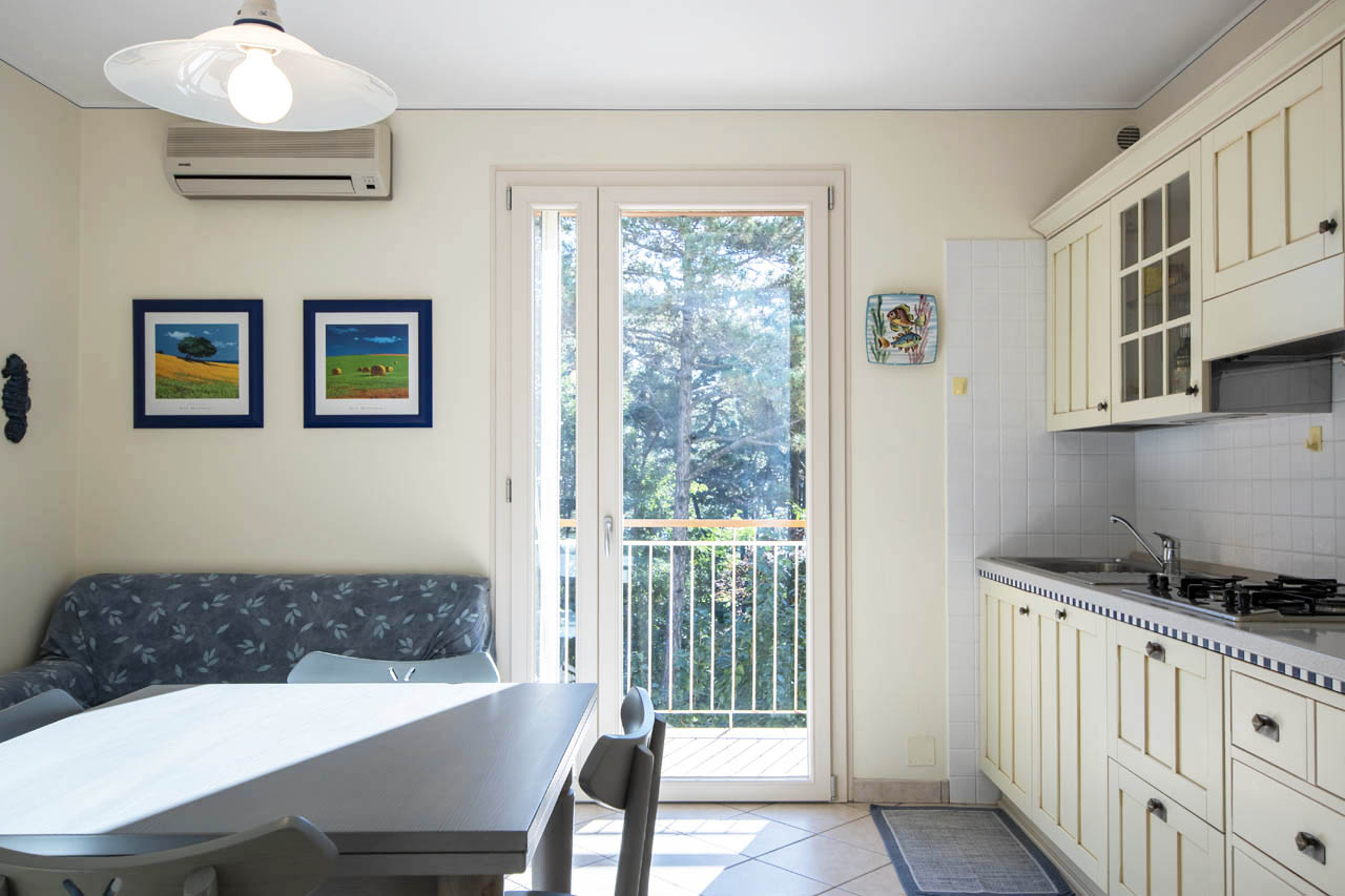 Esposto ad est, con vista sul verde della pineta che garantisce privacy e tranquillità, si prersenta in ottimo stato di manutenzione, è climatizzato e con arredi su misura.